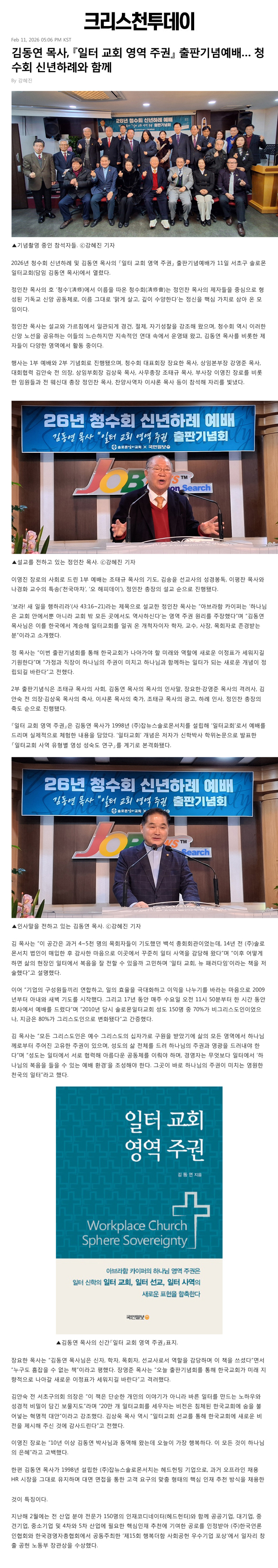 [Å©¸®½ºÃµÅõµ¥ÀÌ]±èµ¿¿¬ ¸ñ»ç, ¡ºÀÏÅÍ ±³È¸ ¿µ¿ª Áֱǡ» ÃâÆÇ±â³ä¿¹¹è¡¦ û¼öȸ ½Å³âÇÏ·Ê¿Í ÇÔ²²